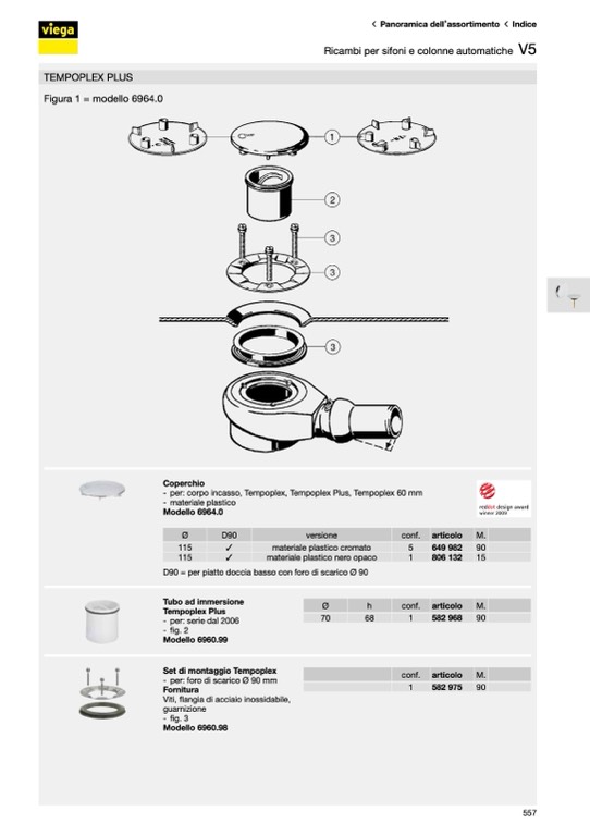 D90 = per piatto doccia basso con foro di scarico Ø 90