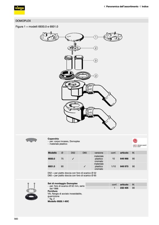 D52 = per piatto doccia con foro di scarico Ø 52