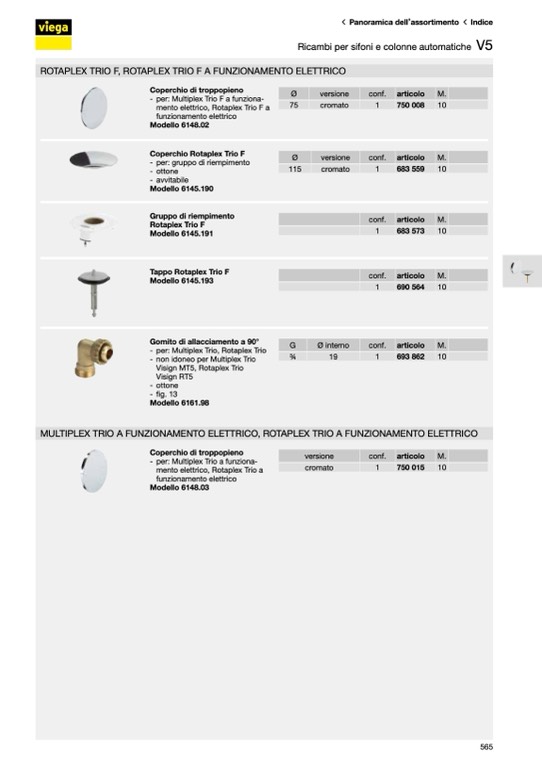 Ricambi per sifoni e colonne automatiche