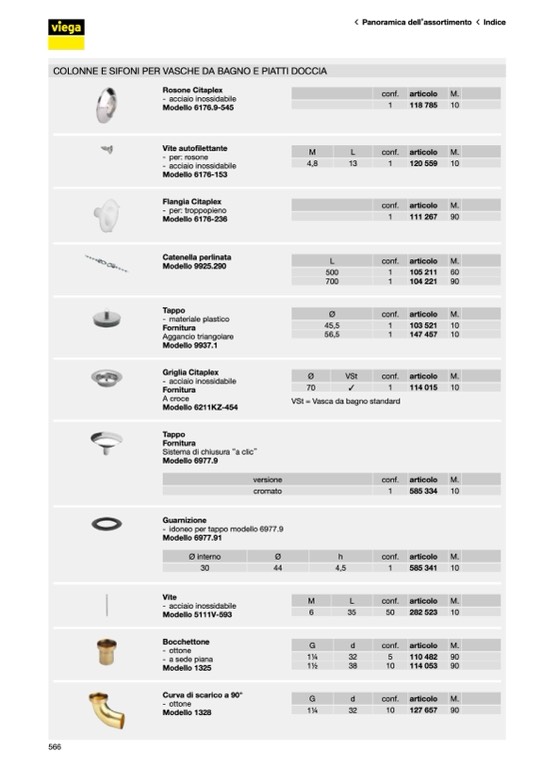 COLONNE E SIFONI PER VASCHE DA BAGNO E PIATTI DOCCIA
