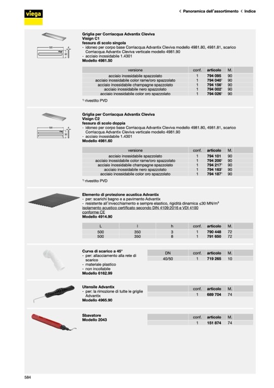 - per: scarichi bagno e a pavimento Advantix