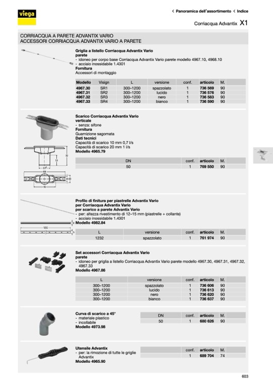 - idoneo per griglia a listello Corriacqua Advantix Vario parete modello 4967.30, 4967.31, 4967.32,