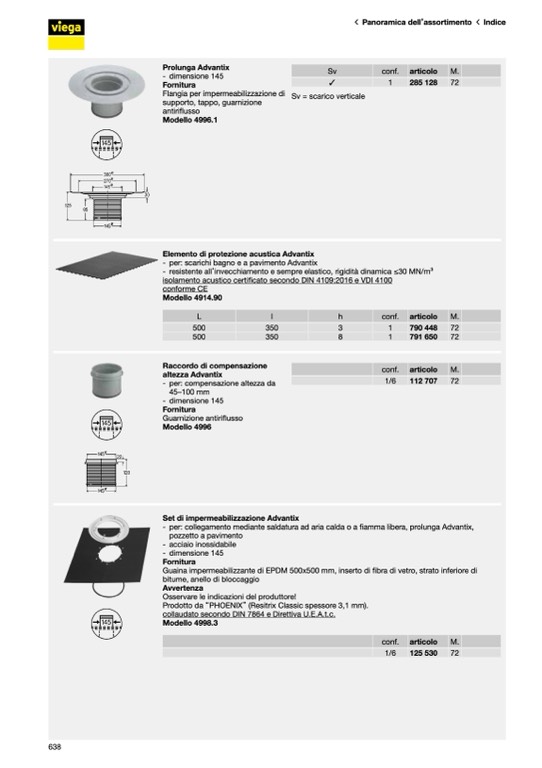 - per: scarichi bagno e a pavimento Advantix