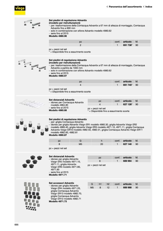modello 4960.40, griglia Advantix Visign ER3 modello 4971.10, 4971.11, griglia Corriacqua