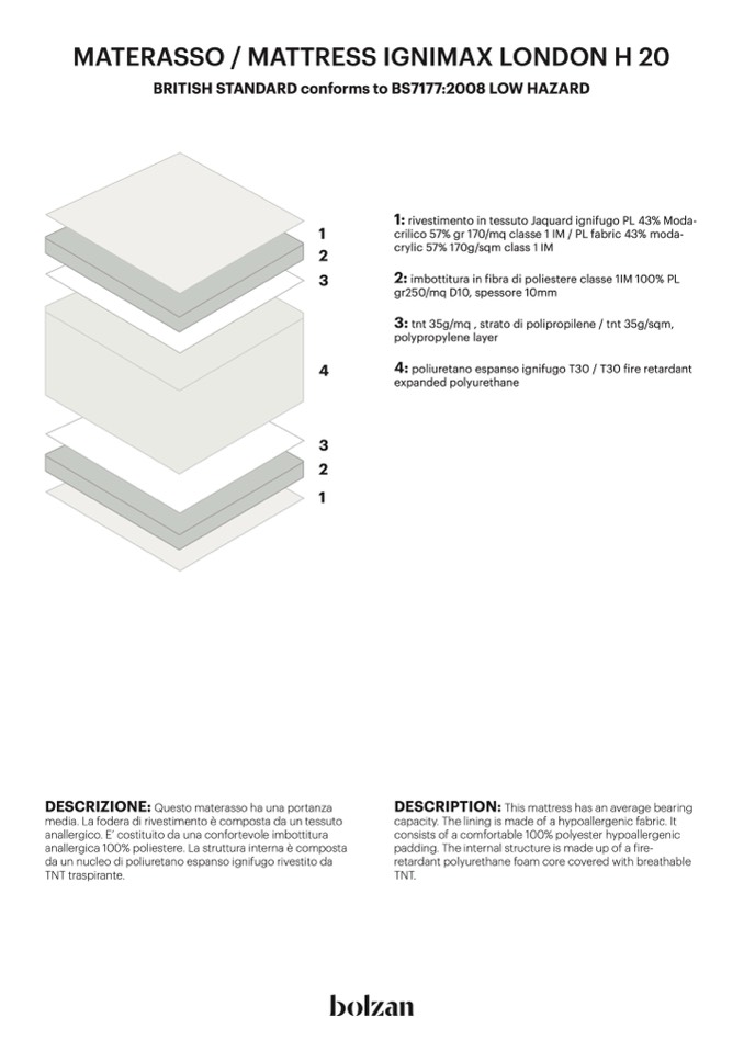 da un nucleo di poliuretano espanso ignifugo rivestito da