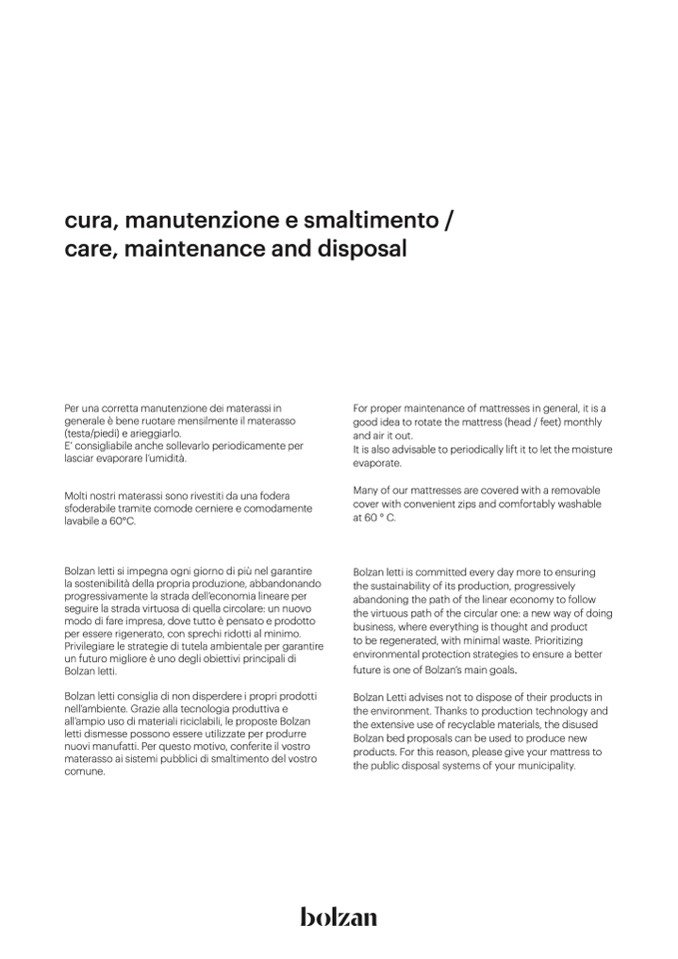 Bolzan letti consiglia di non disperdere i propri prodotti