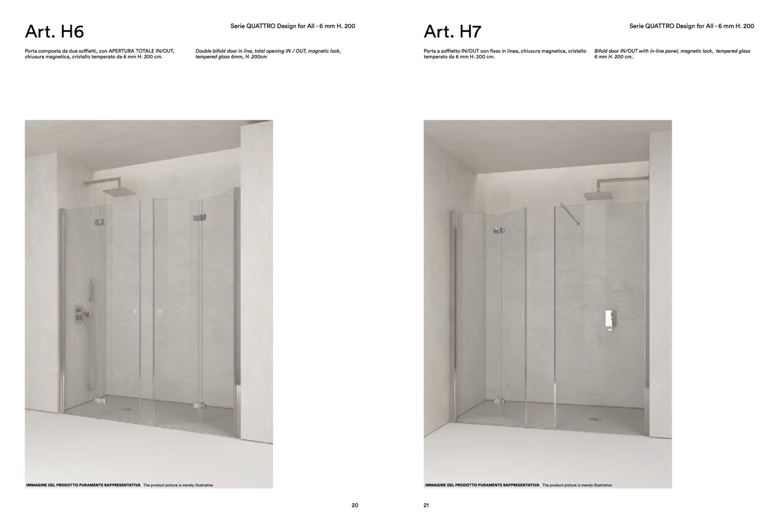 chiusura magnetica, cristallo temperato da 6 mm H. 200 cm.