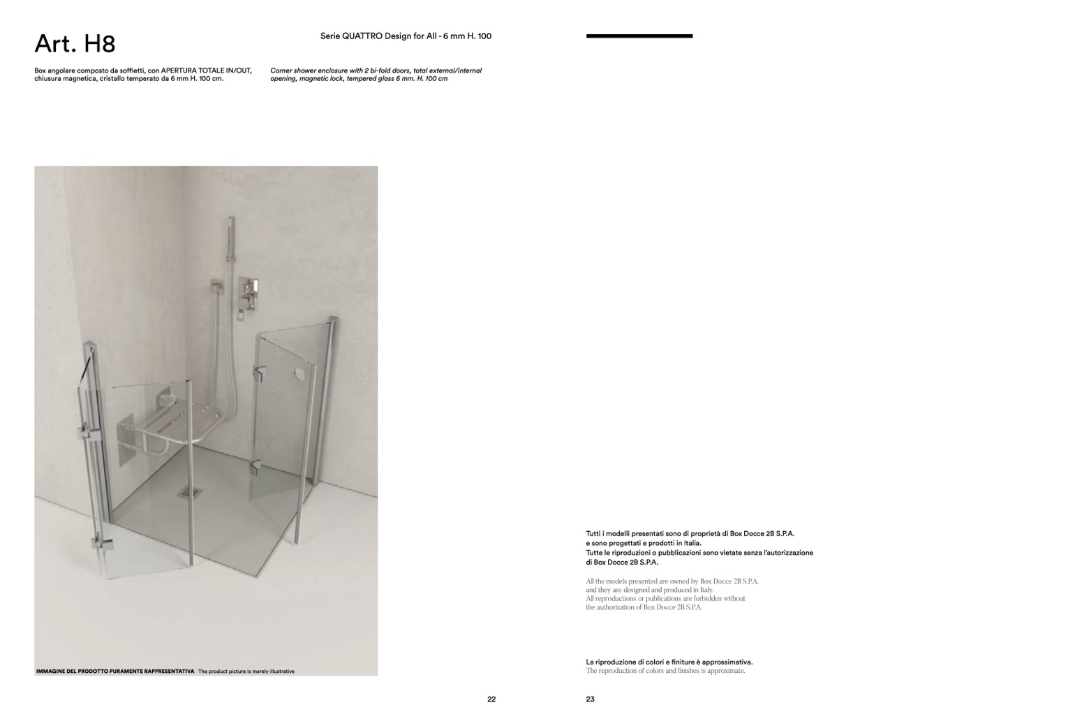 Box angolare composto da soffietti, con APERTURA TOTALE IN/OUT,