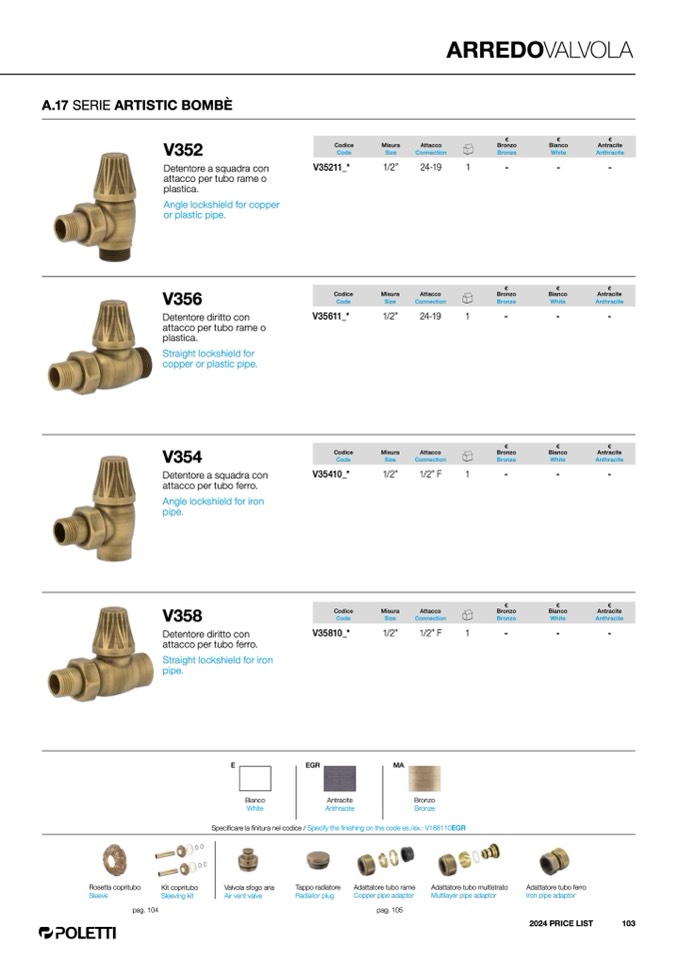 Specificare la finitura nel codice / Specify the finishing on the code es./ex.: V168110EGR