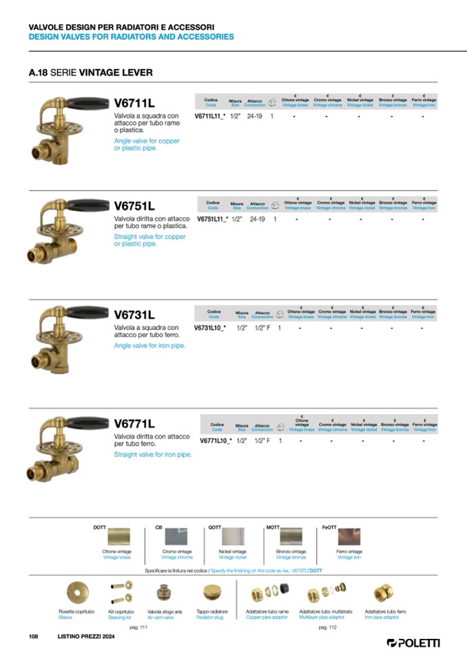 Specificare la finitura nel codice / Specify the finishing on the code es./ex.: V675TLTDOTT