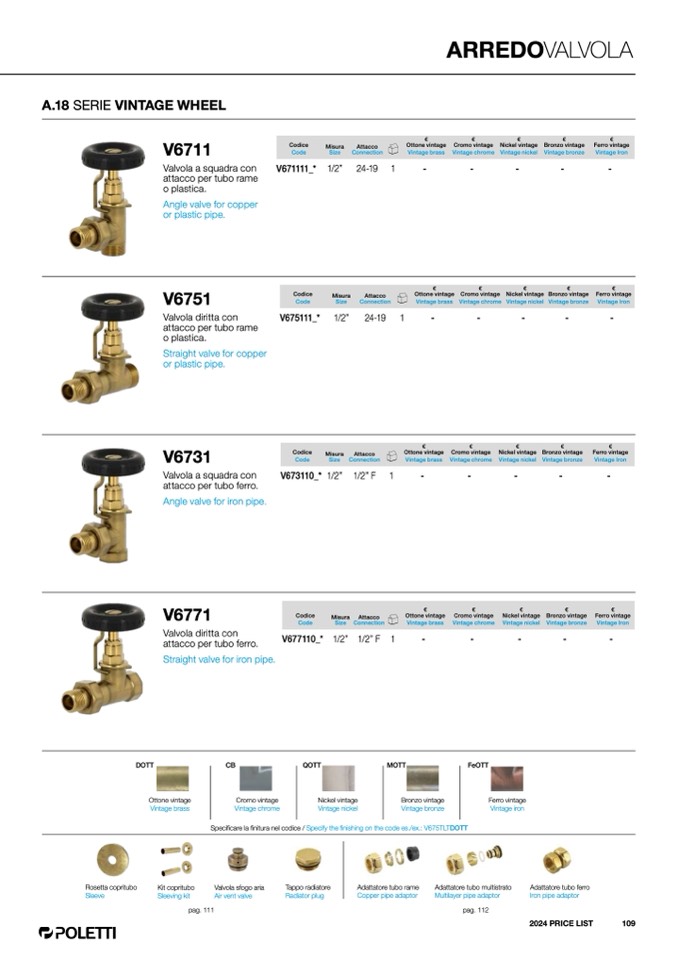 Specificare la finitura nel codice / Specify the finishing on the code es./ex.: V675TLTDOTT