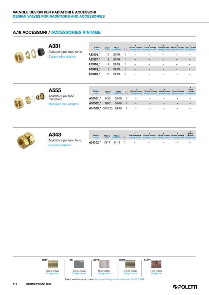 Specificare la finitura nel codice / Specify the finishing on the code es./ex.: V675TLTDOTT