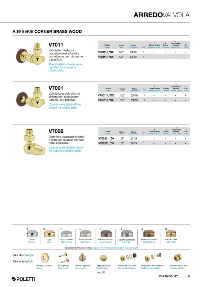 Specificare la finitura nel codice / Specify the finishing on the code es./ex.: A55600R
