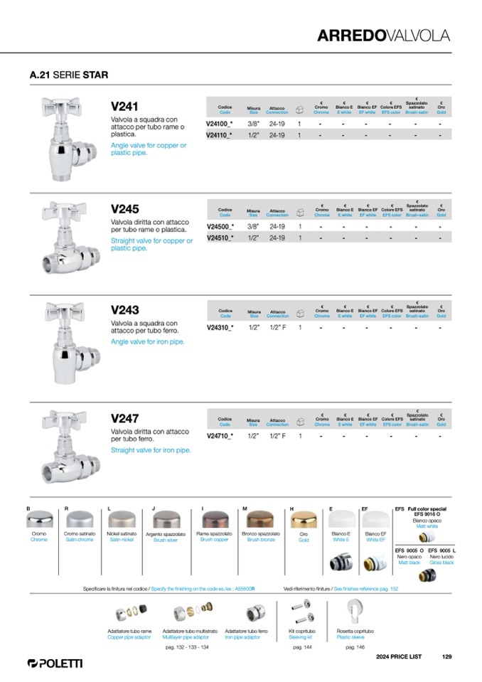 Vedi riferimento finiture / See finishes reference pag. 152