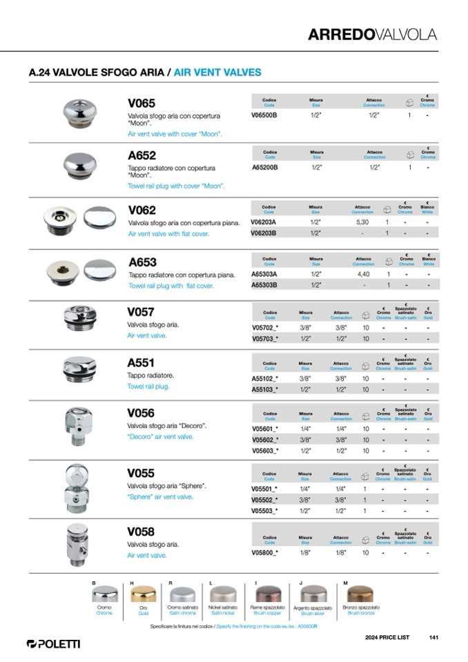 Specificare la finitura nel codice / Specify the finishing on the code es./ex.: A55600R