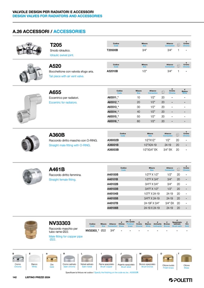 Specificare la finitura nel codice / Specify the finishing on the code es./ex.: A55600R