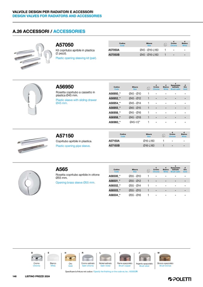 Specificare la finitura nel codice / Specify the finishing on the code es./ex.: A55600R