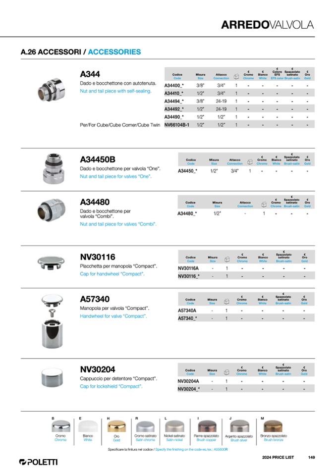 Specificare la finitura nel codice / Specify the finishing on the code es./ex.: A55600R