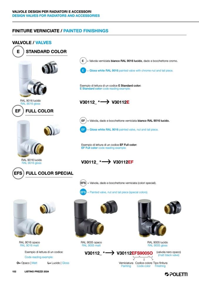 EFS = Valvola, dado e bocchettone verniciata (colori speciali).