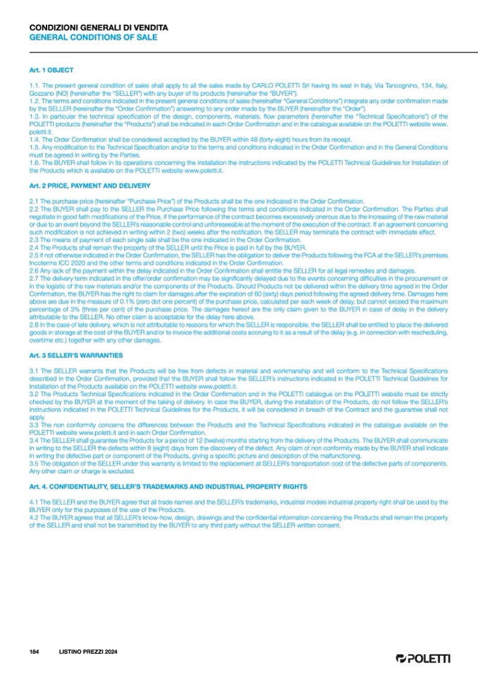 POLETTI website www.poletti.it and in each Order Confirmation.