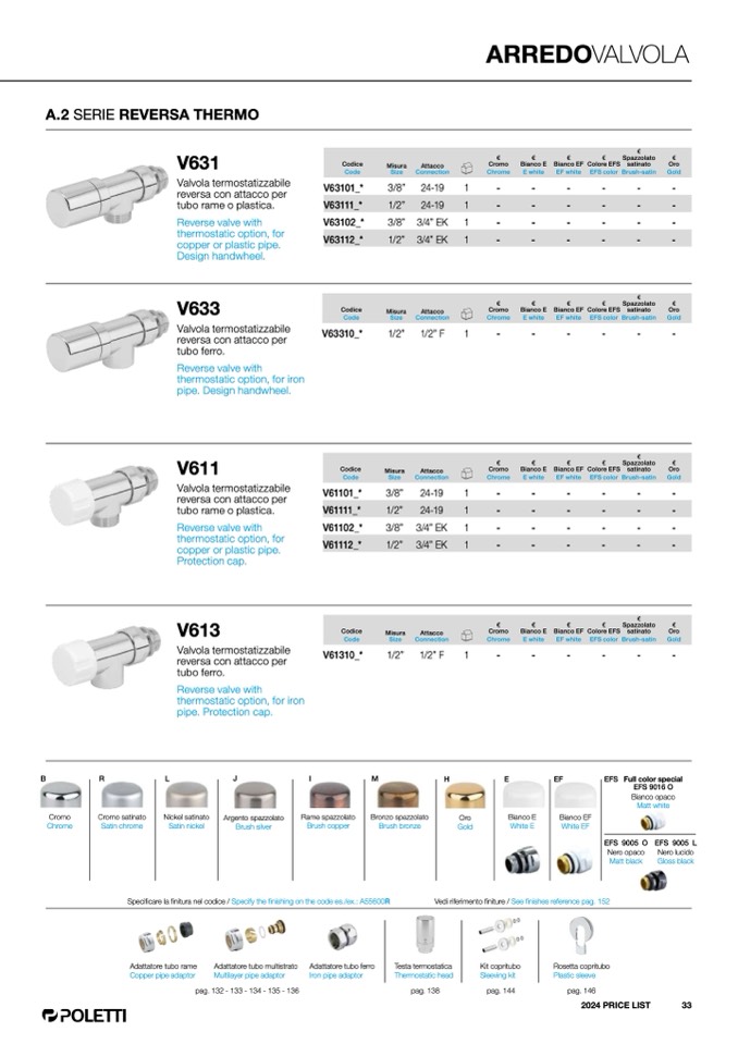 Specificare la finitura nel codice / Specify the finishing on the code es./ex.: A55600R