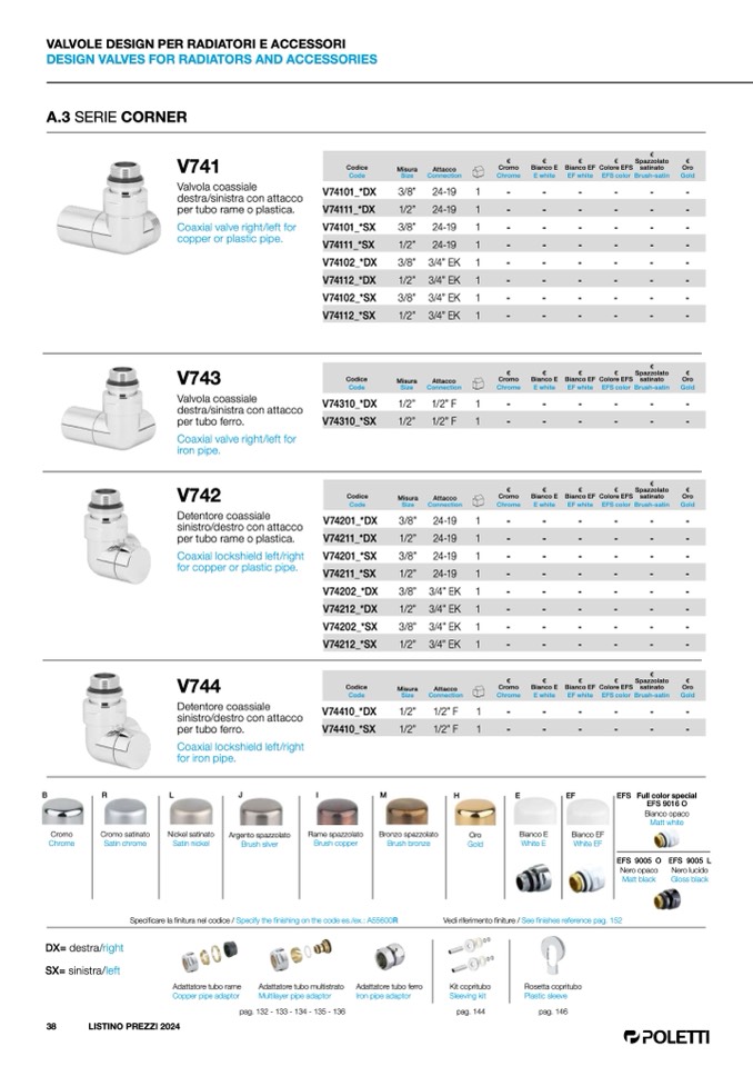 Specificare la finitura nel codice / Specify the finishing on the code es./ex.: A55600R
