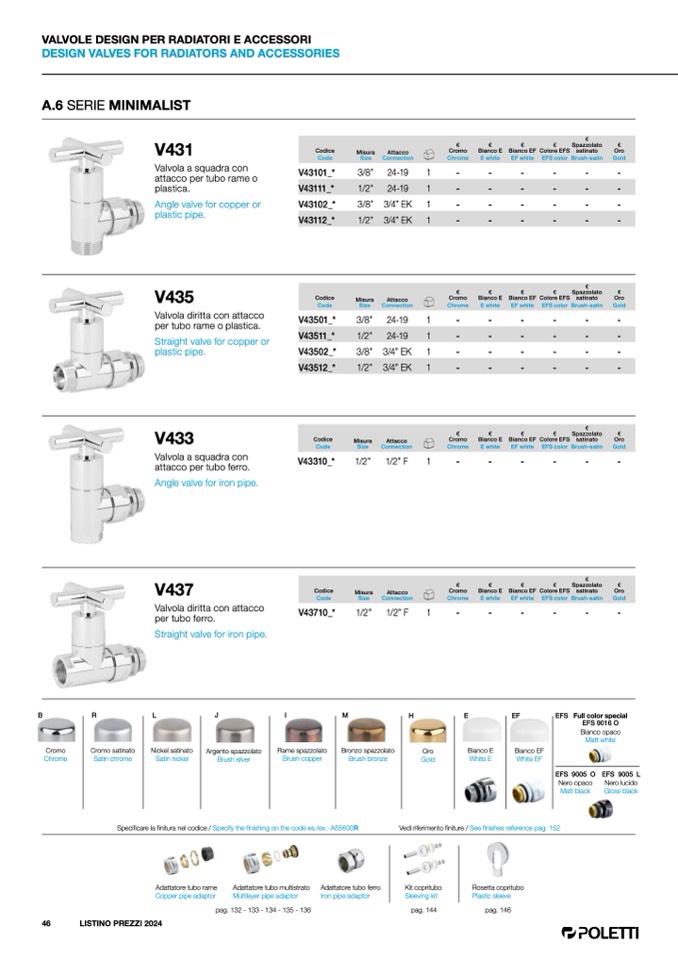 Specificare la finitura nel codice / Specify the finishing on the code es./ex.: A55600R
