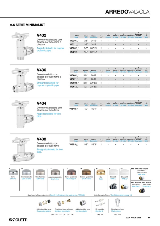 Vedi riferimento finiture / See finishes reference pag. 152