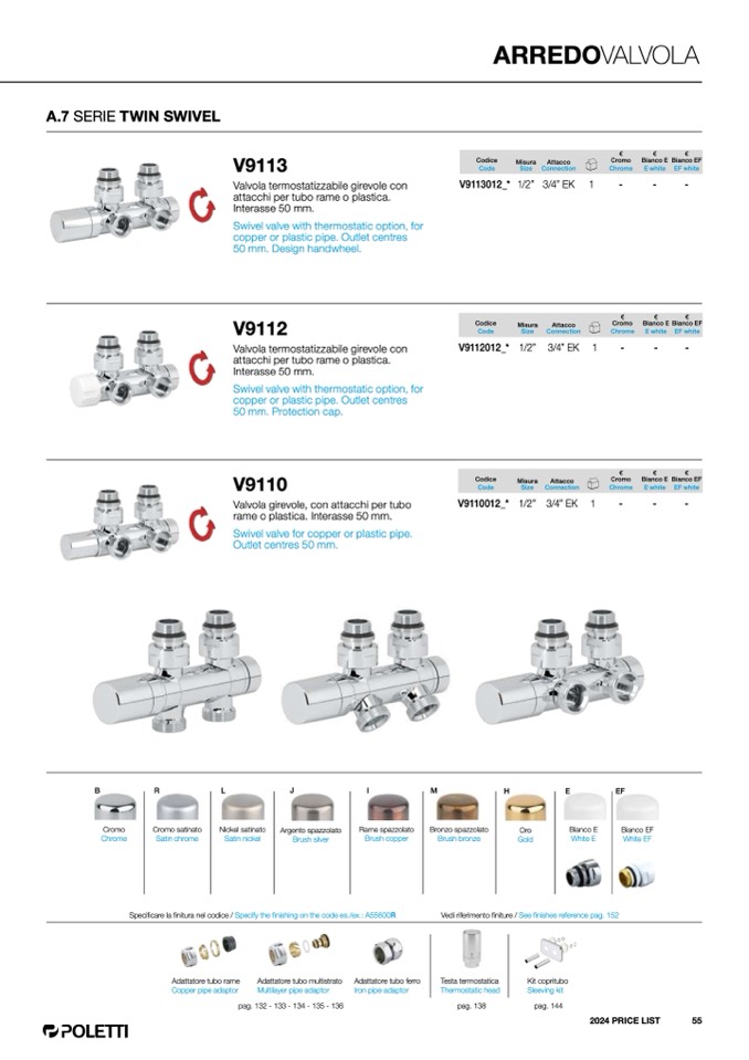 Specificare la finitura nel codice / Specify the finishing on the code es./ex.: A55600R