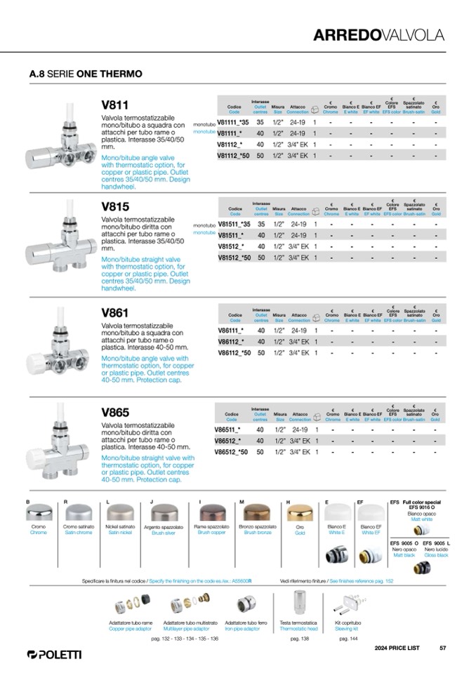 Vedi riferimento finiture / See finishes reference pag. 152