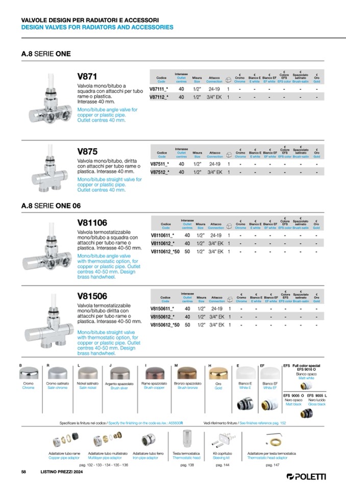 Specificare la finitura nel codice / Specify the finishing on the code es./ex.: A55600R