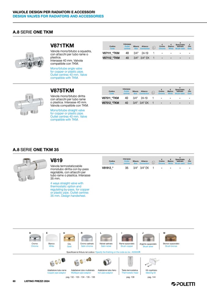Specificare la finitura nel codice / Specify the finishing on the code es./ex.: A55600R