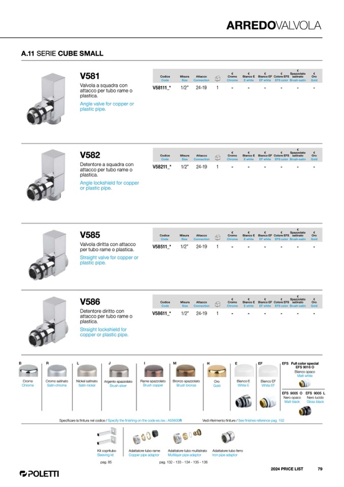 Vedi riferimento finiture / See finishes reference pag. 152