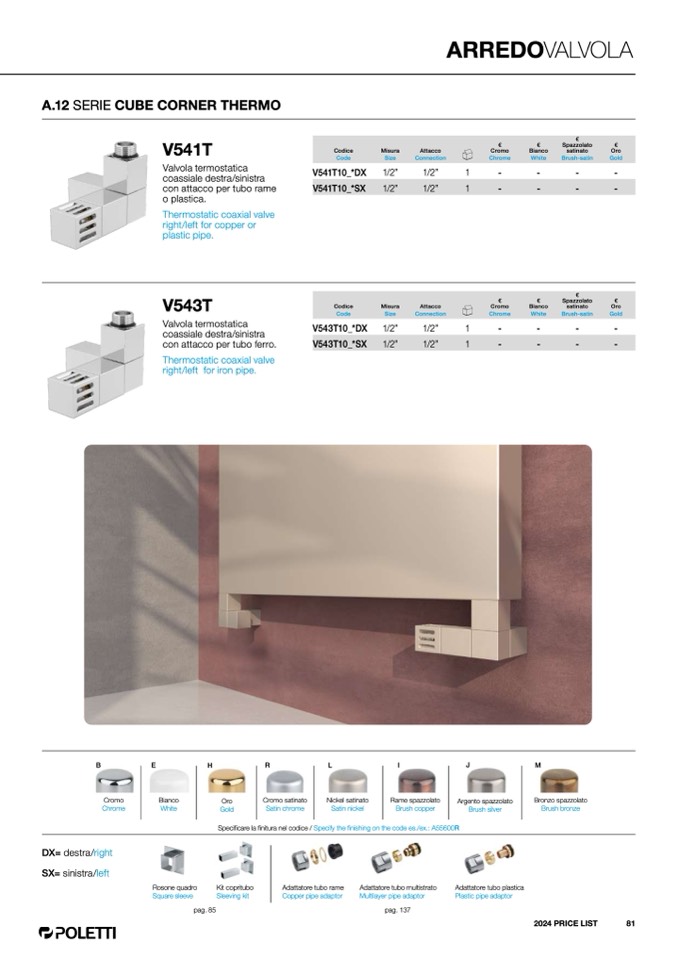 Specificare la finitura nel codice / Specify the finishing on the code es./ex.: A55600R