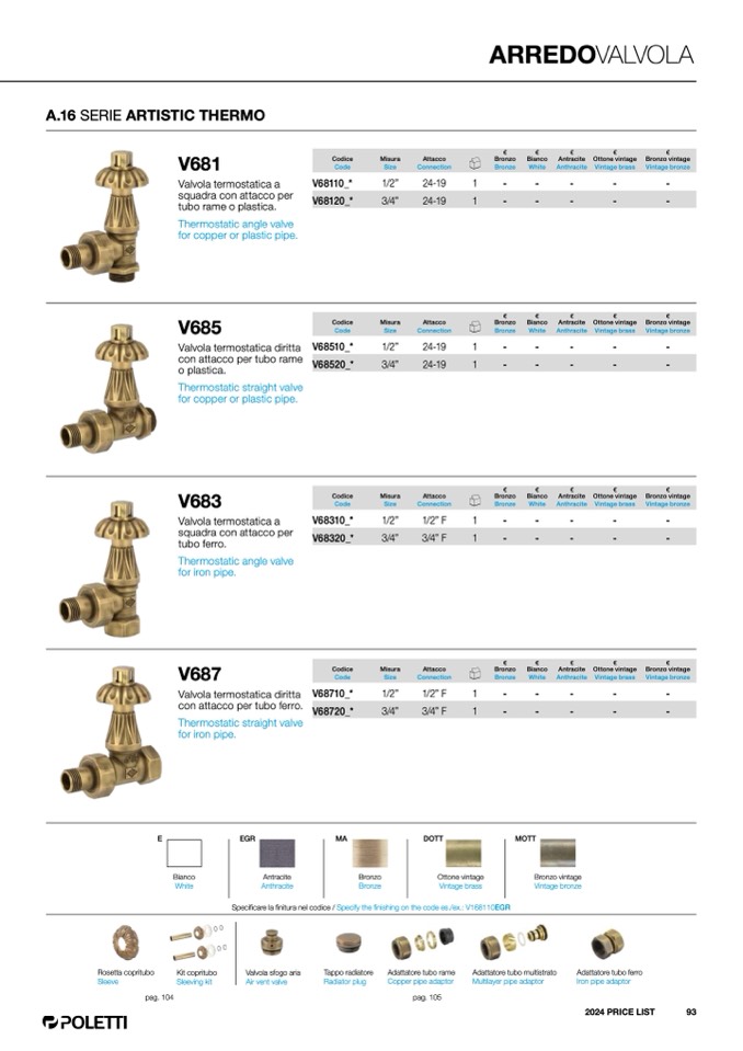 Specificare la finitura nel codice / Specify the finishing on the code es./ex.: V168110EGR