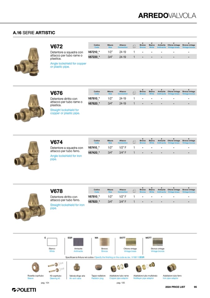 Specificare la finitura nel codice / Specify the finishing on the code es./ex.: V168110EGR