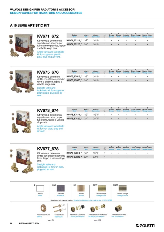 Specificare la finitura nel codice / Specify the finishing on the code es./ex.: V168110EGR