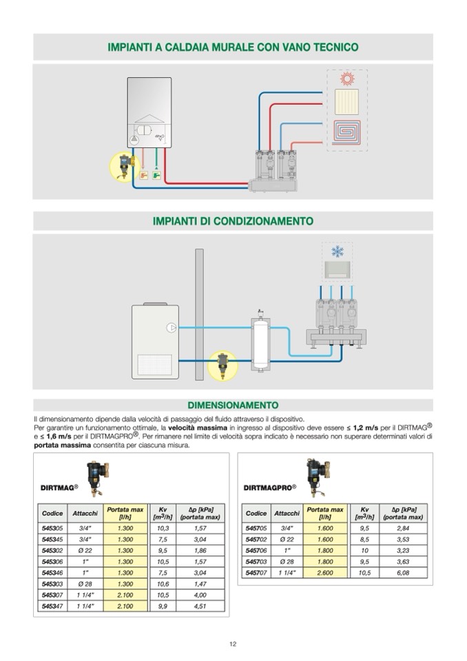 à massima in ingresso al dispositivo deve essere ≤ 1,2 m/s per il DIRTMAG