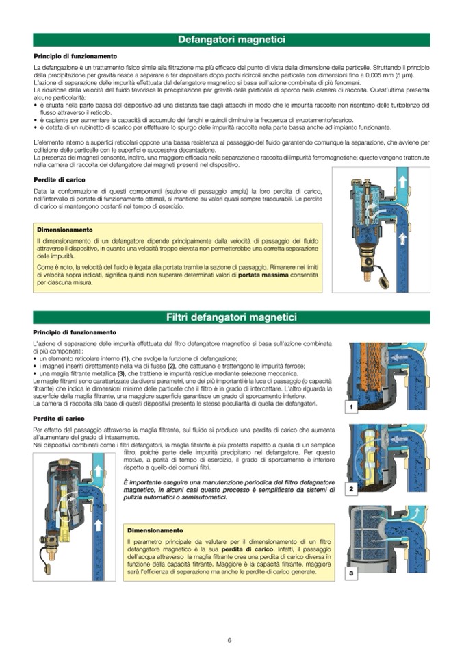 fluido favorisce la precipitazione per gravità delle particelle di sporco nella camera di raccolta. Quest’ultima presenta