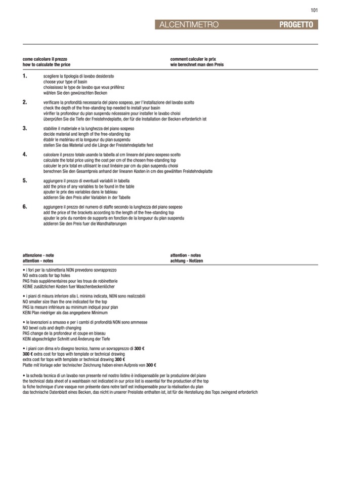 • la scheda tecnica di un lavabo non presente nel nostro listino è indispensabile per la produzione del piano