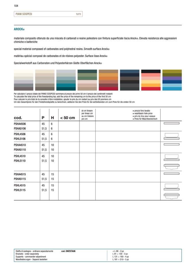Per calcolare il prezzo totale del PIANO SOSPESO sommare al prezzo dei primi 50 cm il prezzo dei centimetri restanti