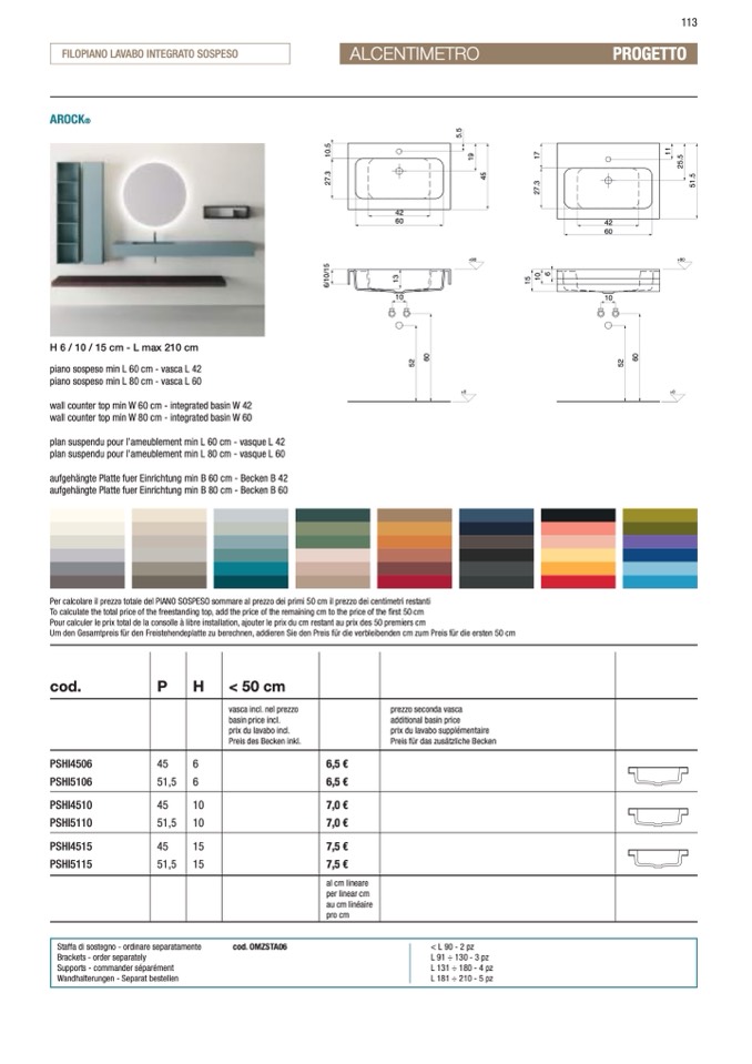 Per calcolare il prezzo totale del PIANO SOSPESO sommare al prezzo dei primi 50 cm il prezzo dei centimetri restanti