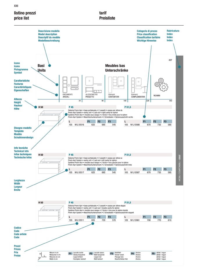 Sistema Premi-Apri • base portalavabo • 2 cassetti • scasso per sifone doppio