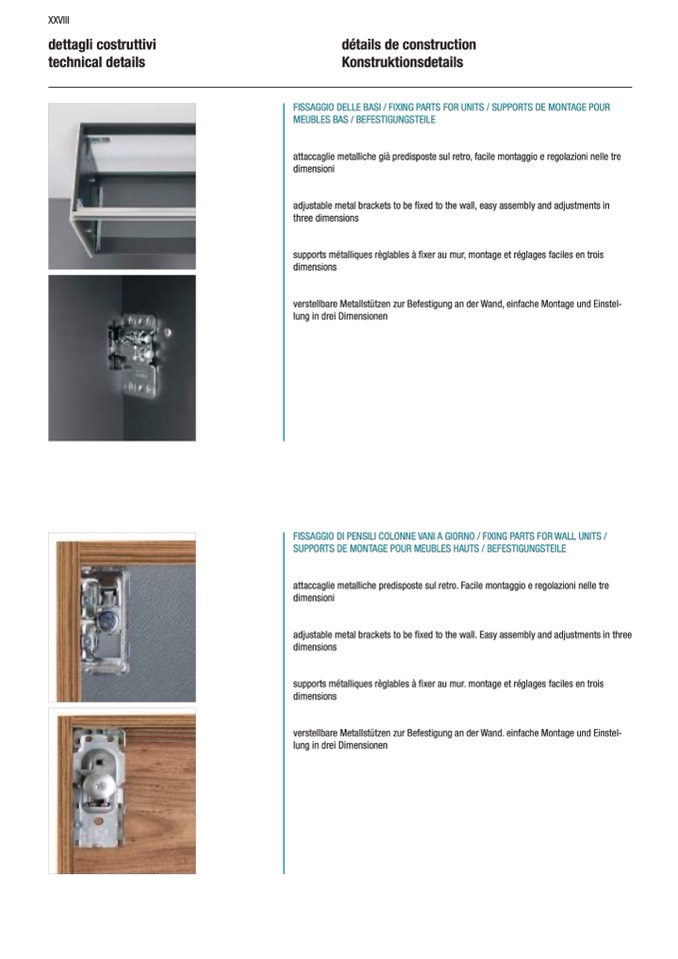 FISSAGGIO DI PENSILI COLONNE VANI A GIORNO / FIXING PARTS FOR WALL UNITS /