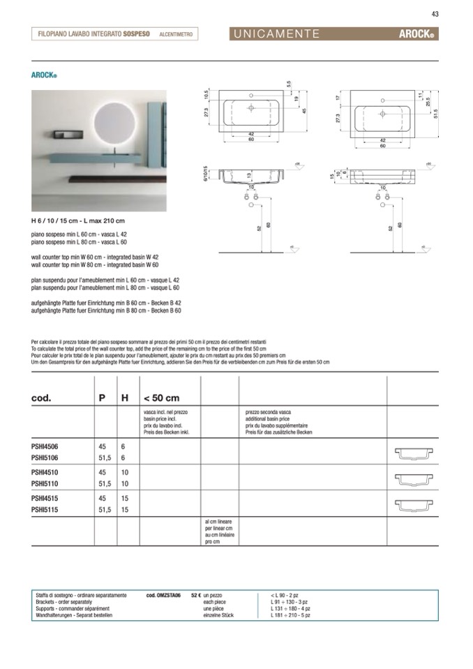 FILOPIANO LAVABO INTEGRATO SOSPESO ALCENTIMETRO