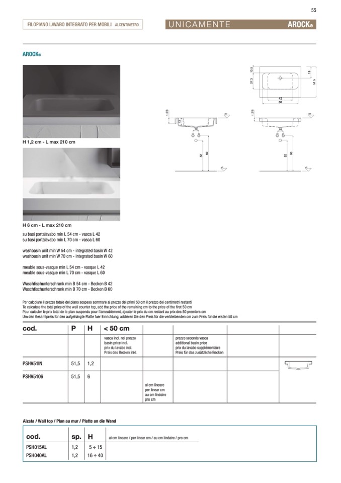 FILOPIANO LAVABO INTEGRATO PER MOBILI ALCENTIMETRO