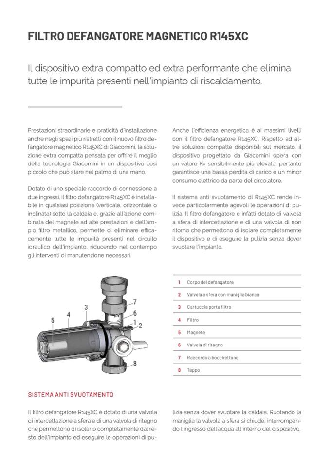 Il filtro defangatore R145XC è dotato di una valvola