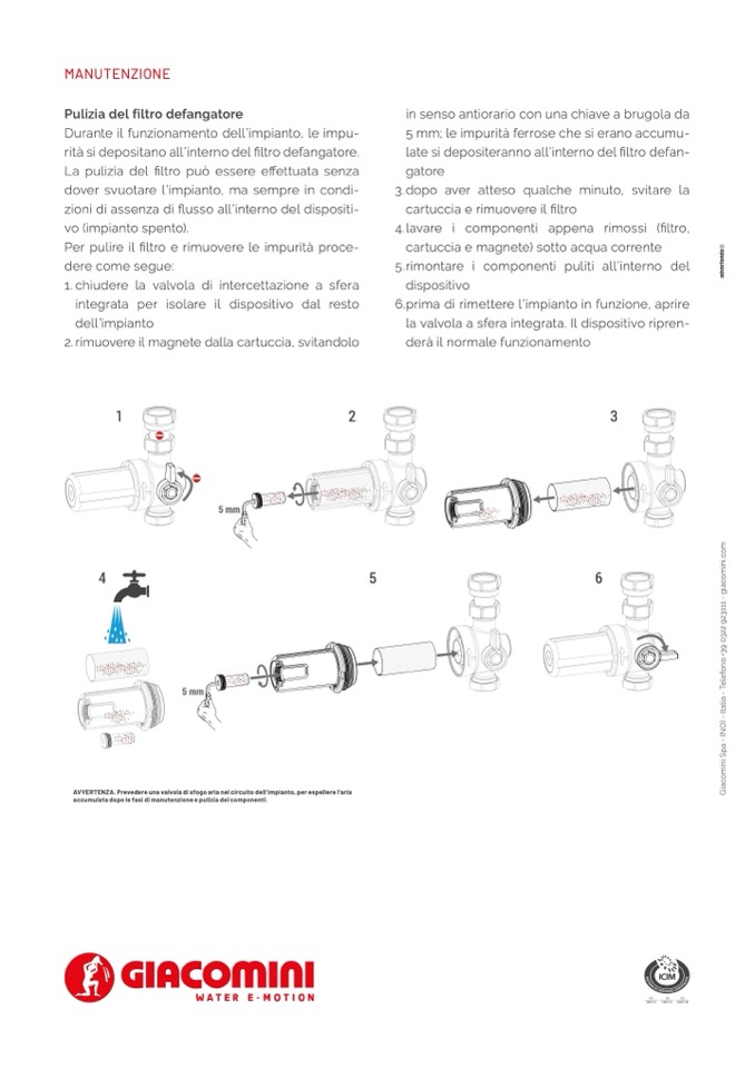 6.prima di rimettere l’impianto in funzione, aprire