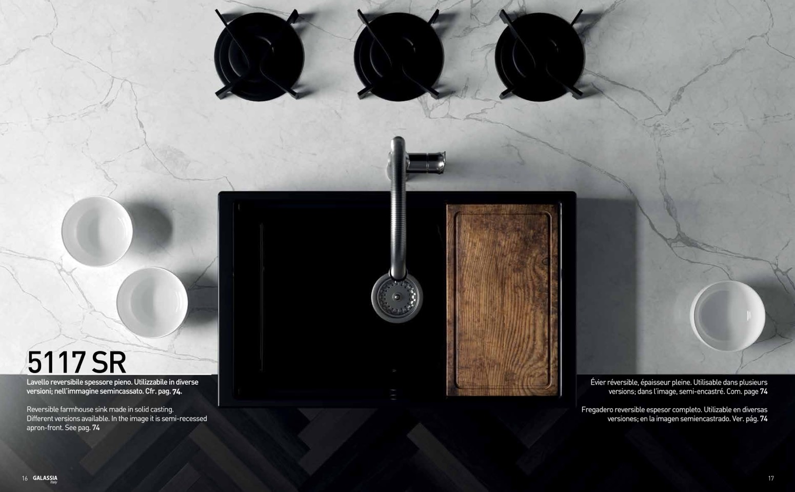 Lavello reversibile spessore pieno. Utilizzabile in diverse