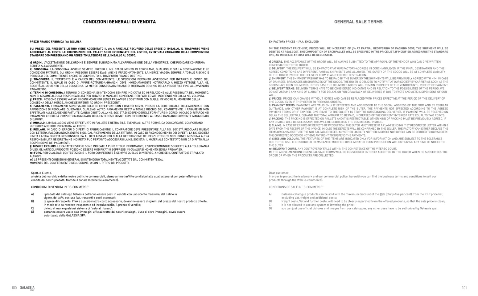 Galassia catalogue products can be sold with the maximum discount of the 35% (thirty-five per cent) from the RRP price list,
